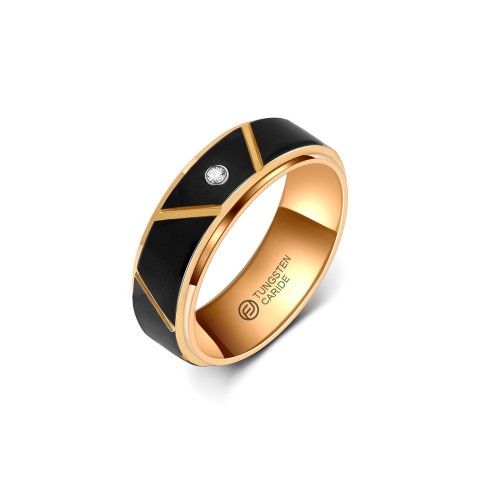 Anel de Tungstênio Preto com Detalhes Rose 8mm (FJ03-8)